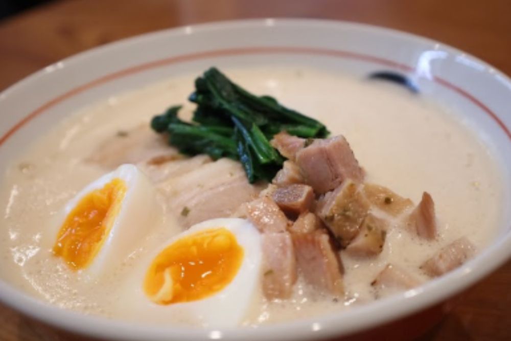 豚骨と鶏ガラの旨みをまっすぐに活かし、もちもち中太麺を使用した、食べごたえのある一杯です。